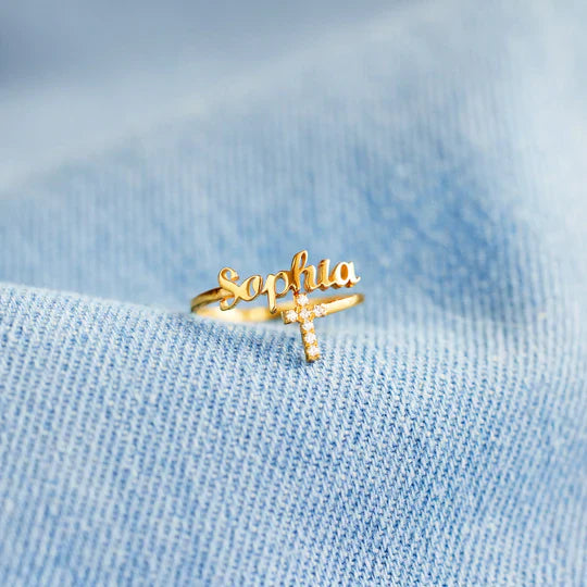 CROSS RING AND PERSONALIZED NAME